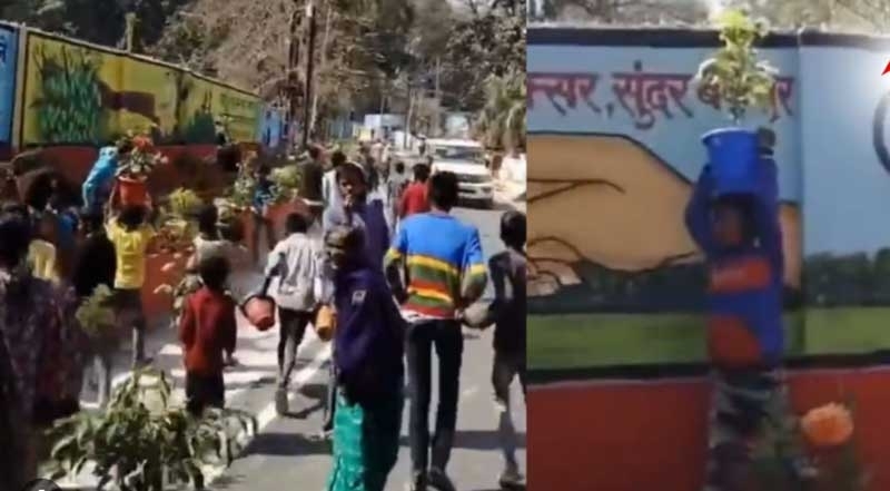 Buxar: Social media is buzzing with a bizarre video showing several women and children have stolen flower pots placed outside the Circuit House in Buxar for the CM Nitish Kumar’s welcome. Nitish was visiting the district as part of his ‘Pragati Yatra.’ During his visit, he unveiled numerous projects for the welfare of the people of the city and its surrounding areas.