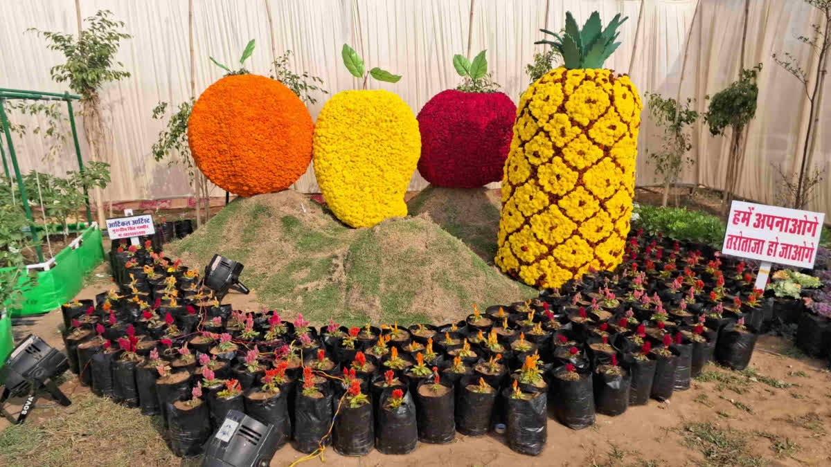 फूलों से बनी आकृतियां आकर्षण का केंद्र बनी है