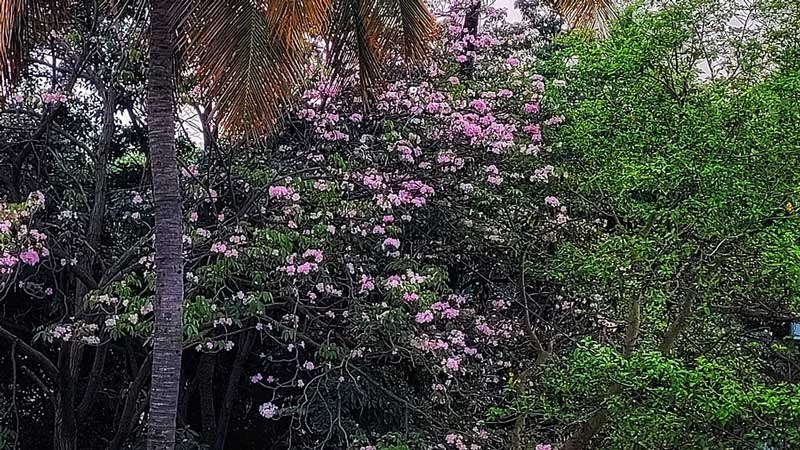 Bengaluru: Several parts of Bengaluru are surprised to see the early arrival of pink Tabebuia rosea. The quality of the tree is that it entices people of all walks of life. Usually the original timing of full bloom of such trees is in March and April. However, it has bloomed almost five months before its original timing. Several areas of the city, such as Mahadevpura, Indiranagar, and Yelahanka, as well as the Outer Ring Road from Hebbal to Benniganahalli, are laden with these light pink flowers.