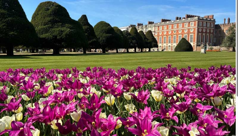 London: The Tulip Festival got underway at the historic Hampton Court Palace, where over 100,000 tulip bulbs have burst into bloom, marking the start of the annual Tulip Festival. This festival is filled with colours, showcasing the UK’s largest tulip garden, spreading more than 240,000 square meters. This palace ground was the residence of King Henry VIII. The vibrant fest has displayed different varieties of tulips in all shapes and colours have further increased the beauty.