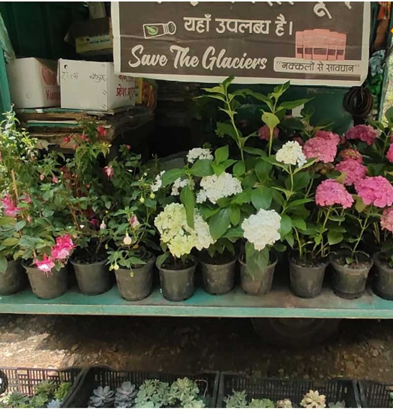 His van is packed with colours, enticing tourists and passersby alike due to the remarkable floral display. A huge number of flower varieties can be seen in his van. He cultivated 13–14 types of hydrangeas, fuchsias, and numerous mountain flowers. Manik grows all of them in his home garden.
