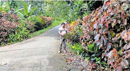 Currently, if anyone enters Cheradi village, then they feel that they are walking into a beautiful garden. Ornamental plants are lined up in a beautiful manner, creating a peaceful and colourful scene. Saji’s home is also situated along the same road. He spent 15 years abroad. When Saji came back to his native place, he found the roadside near his house covered in weeds. He decided to do something.