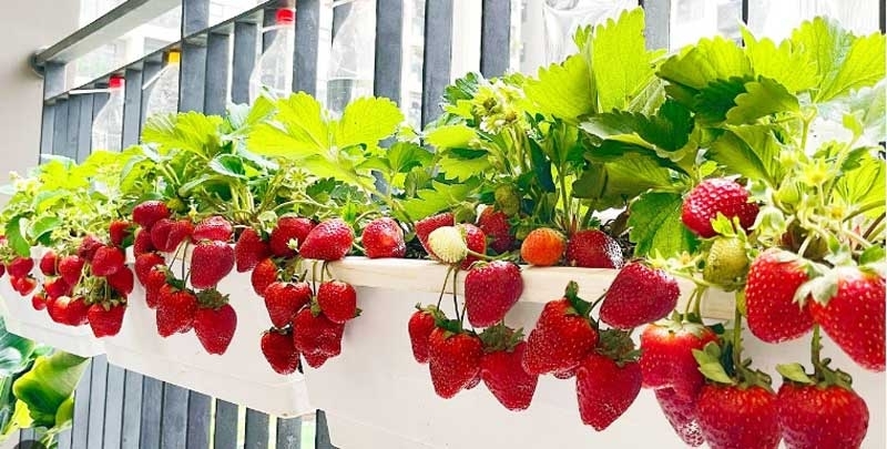 Strawberry plants need 4 to 6 hours of sunlight daily, so place them in a sunny spot. Water them carefully—keep the soil slightly moist but avoid overwatering, as too much water can rot the roots. Add organic fertilizer once a month to provide essential nutrients. To protect the plants from pests, spray neem oil as a natural pesticide.
