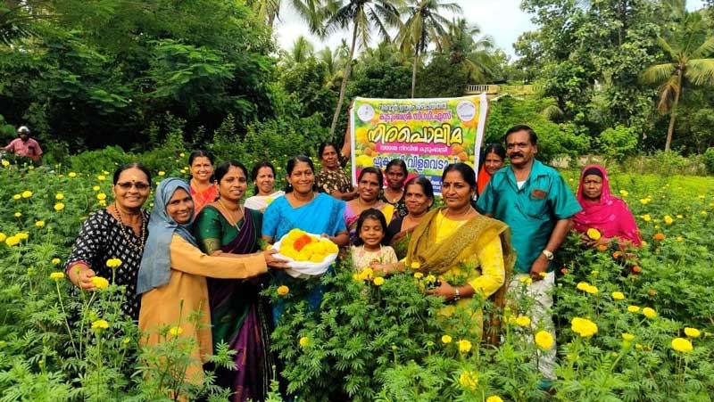 Marigold, jasmine, and lotus are the main flowers grown in view of Onam Market. Currently, flowers are being grown on 1,253 acres of land. Overall, 1,819 farmer groups were involved in floriculture on 780 acres in 2023. This year, the group had a target to start flower cultivation on 1,000 acres, but in a rare incident, 3000 women farmers came up with a mission, and they successfully grown flowers on 1,253 acres.