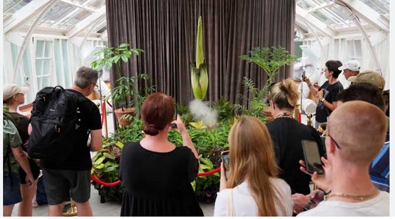 The rare species takes 7 to 10 years to bloom, and whenever it blossoms, the plant releases a strong, foul odor that attracts pollinators such as carrion beetles and flesh flies. Tourists from far-flung areas come to see this rare occurrence. The latest bloom, which had taken place in the Australian capital Canberra, was the first in 15 years at the Australian National Botanic Gardens.